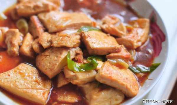 3、锅中加水烧开,放入豆腐焯水。水开后,煮2-3分钟,使豆腐软化;