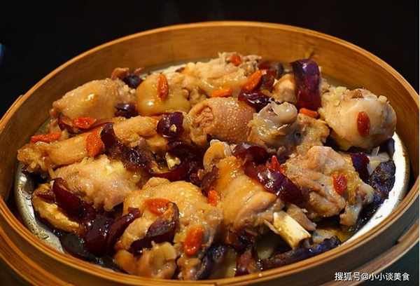 3、将腌制好的鸡肉放入沸腾的蒸锅中,煮15分钟后关火,再煮3分钟撒上葱花即可。