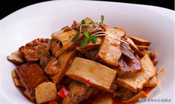 原料:五花肉、辣椒、豆腐干、盐、料酒、味精、六月鲜
