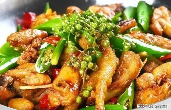 材料:鸡半只、青椒3、4个、葱花、姜末、蒜片、干辣椒、八角1个、山奈1个、盐、料酒、老抽、红糖、味精