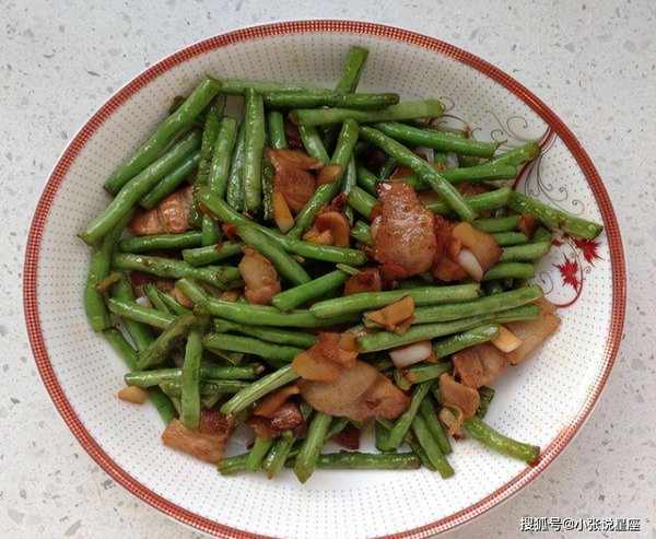 2、将五花肉放入锅中炒香,再将切好的蒜放入锅中炒香;3、豆子倒入锅中翻炒,加适量盐加水焯一分钟盖上锅盖;
