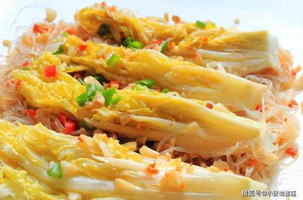 1.用手撕下大片白菜叶,放在盘子里,用大火煮五六分钟左右,直到白菜变成半透明状。2.面条用开水泡三分钟。取出,放入蒸好的白菜碗中。3.锅烧热,加油,立即加入蒜茸爆香,酱油少许,水半碗,煮好后加入青红椒粉,小勺香菇精和盐调味。4.将熬好的汤浇在白菜面上