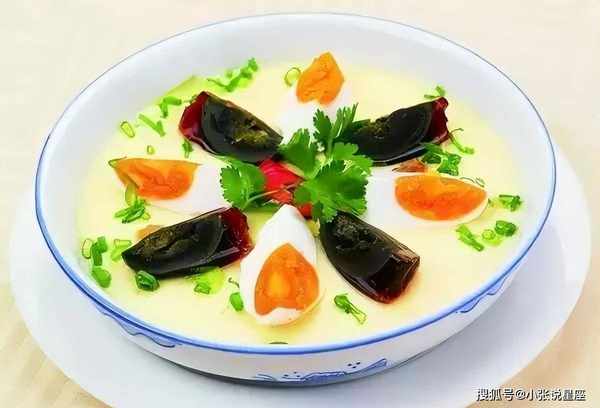 材料:皮蛋1个、生咸蛋黄2个、土鸡蛋2个、姜1小块、盐1克。