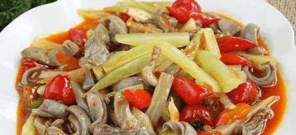 做法:1、将煮熟的牛肚切条,红辣椒和野辣椒(怕野辣椒辣的话)切成小块,芹菜切成片备用。