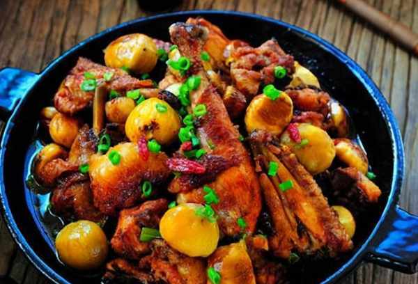 材料:鸡肉1只,去皮栗子16个,煮熟的鹌鹑蛋18个,青椒1个,胡萝卜1条,葱姜各片,八角1个,桂皮2小块