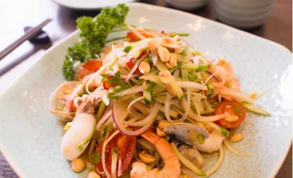5.加入甜豆、胡萝卜和酱汁拌匀,冷藏30分钟即可食用。