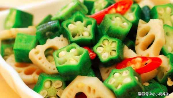 材料:莲藕2根(九孔)、秋葵皮2片、胡萝卜半根、葵花籽油、盐、生抽、鸡精。