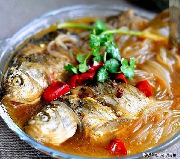 原料:鲫鱼500克,粉丝适量,盐适量,食用油500克,干红辣椒10个,花椒适量,生姜适量,料酒适量,适量香菜的量