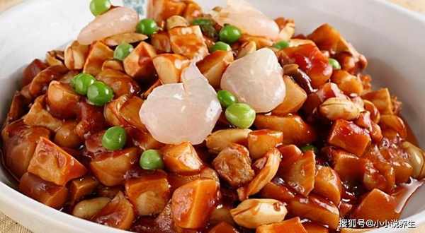 材料:火腿20克、鸡脖子20克、冬笋20克、香菇20克、虾仁20克、四季豆20克、豆腐干20克、红萝卜20克、年糕200克、糖1茶匙(1茶匙海鲜)(5克)、黑豆酱汁1茶匙(5ml),盐1茶匙(5g),油30ml。做法1、将火腿、鸡肉、冬笋、豆腐干、香菇、胡萝卜分别洗净,切成0.5厘米的小方块,年糕切成0.5厘米厚的片备用。