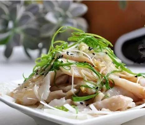 5.将胡萝卜丝、姜丝、香菜段撒在熟鱼片上,加入花椒油、盐、白酒、味精,拌匀即可。