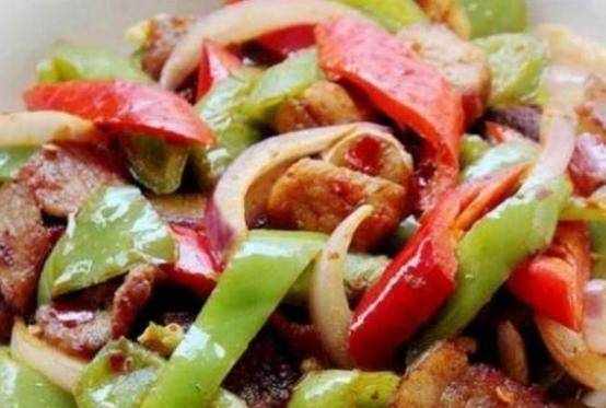 3.倒入青红椒和洋葱炒香,加入一大勺豆瓣酱、糖和陈醋炒香,最后加少许盐和生抽拌匀即可上桌。
