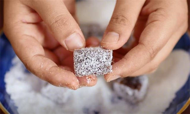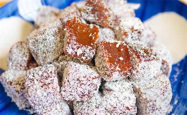 10.为了避免吃的时候过于粘手,在表面裹一层椰蓉,或者是砂糖来增加风味,红糖不怎么甜,不建议大家去减少糖量做好的姜汁软糖,在干净的环境下保存,可以存储很久都不会变坏,喜欢的朋友可以在家试试哦。