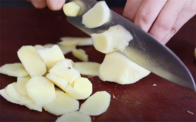 1.做姜糖,我们用到最主要的材料就是生姜,先把生姜削皮,再切成姜片。