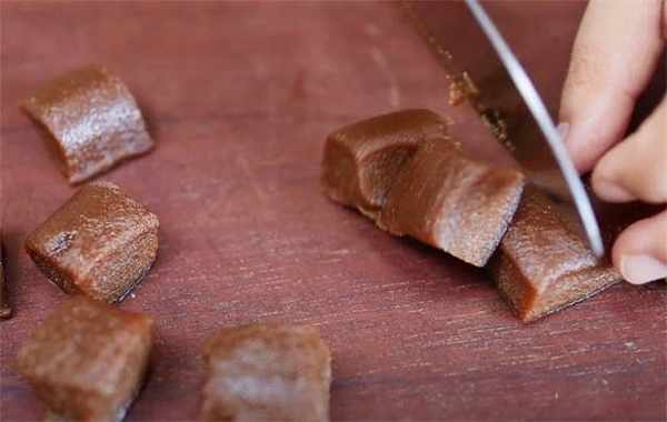 8.脱模的时候,直接把它撕扯下来就可以了,这样我们的姜汁软糖就做好了。
