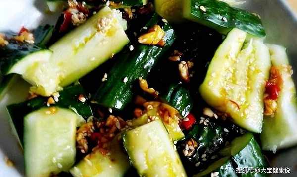 3.然后切成小块备用。4.将切碎的黄瓜放入碗中,切碎3瓣大蒜撒在碗中。