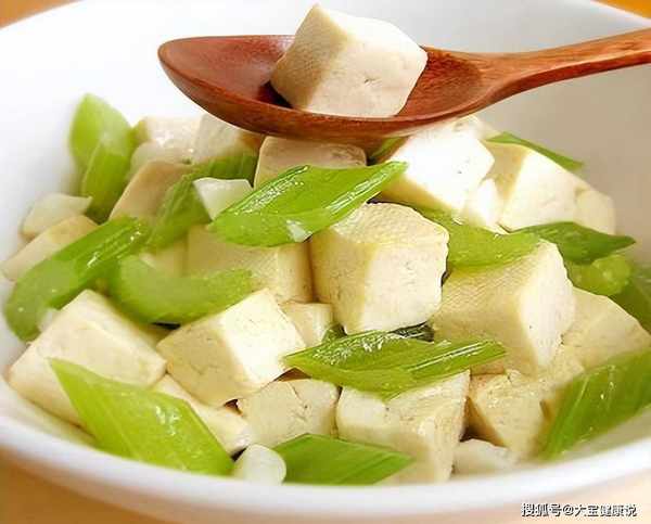 原料:北豆腐、芹菜、盐、蒜、香油、水淀粉、高汤