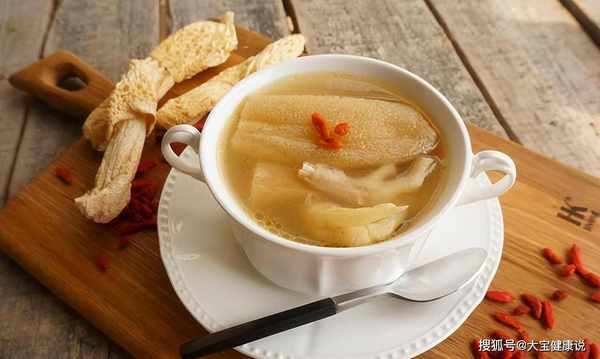 大约1小时后,鸡汤呈金黄色。此时将枸杞和冬菇片加入鸡汤中煮10分钟左右,让冬菇吸收鸡汤的味道。最后根据个人口味加盐,关火。