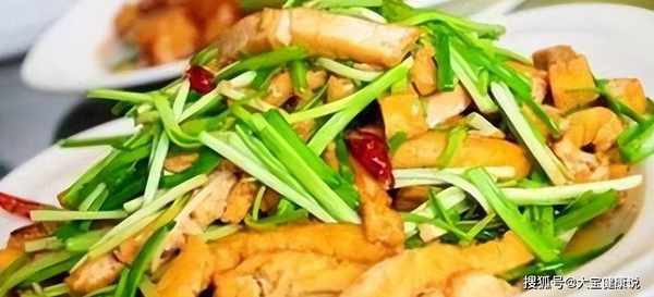 5、最后加入韭菜,翻炒片刻,韭菜出汤前关火起锅。
