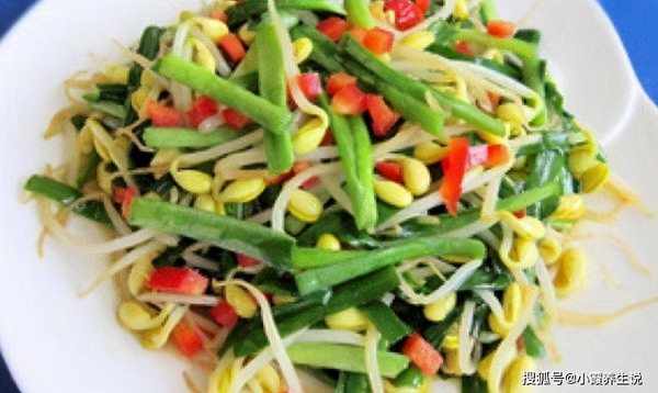 原料:豆芽400克,生姜三片,花椒一个,葱、韭菜、味精、盐各适量。