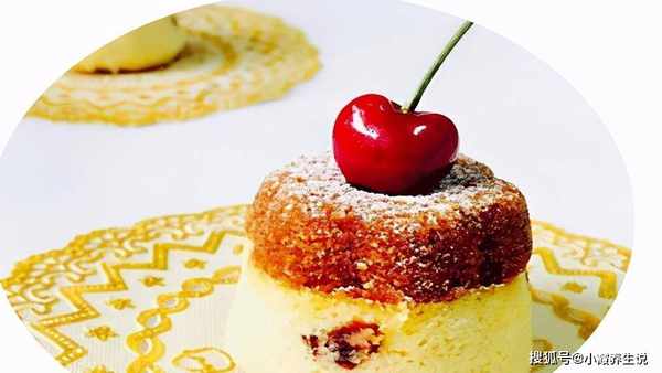 13、筛入少许糖粉,放入一颗红心樱桃。
