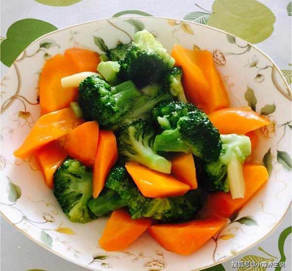材料:西兰花(适量)、胡萝卜(适量)、干辣椒(适量)、大蒜(适量)、花椒(适量)、盐(适量)
