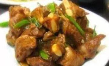 3、锅内放底油烧热至40%,加入8克姜片和洋葱炒香,加入鲜汤100克,倒入炒好的材料,3克老抽加入。、黄酒8克,放少许盐和糖调味,大火收干汤汁;