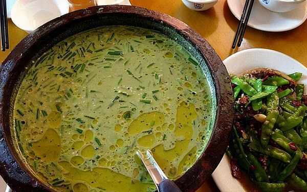 其次客家小吃中著名的还有“擂茶”,主料是野生青草药,有鱼腥草、车前草、薄荷、艾叶等,将这些草料擂烂之后加入高汤,再加入瘦肉、小肠等配料。擂茶虽好吃,不仅能填饱肚子,还具有清热解毒的功效,只不过擂茶属于凉性,孕妇不要轻易食用。