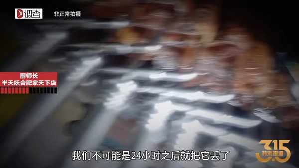 半天妖烤鱼继续使用过期食材。图/新京报视频截图