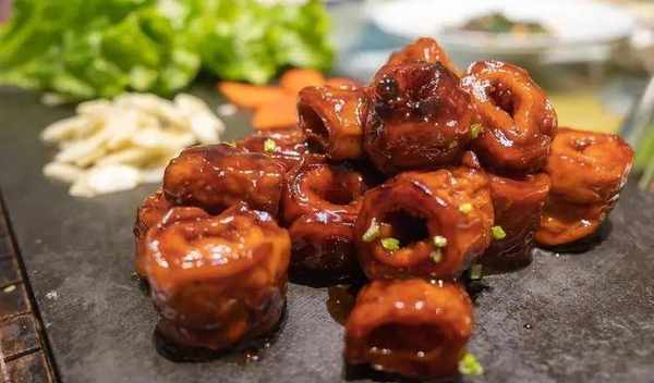 九转大肠为什么叫这个名字呢?是因为大肠造型山路十八弯吗?那必然不是。九转大肠流行于光绪年间,光绪帝素喜丹方,常常服用九炼金丹,店家为了取悦大众,就剽窃了术士的智慧,取名叫做九转大肠。