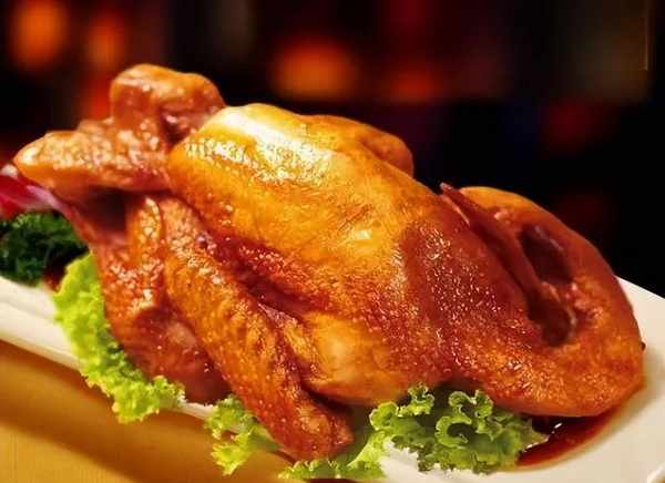 德州扒鸡又名天下第一鸡,是乾隆年间山东的御用贡品。德州扒鸡经过人工的细细雕琢,外形饱满形同侧卧,抖一抖,骨肉分离,五香味扑鼻。咬上一口鸡肉丝丝如缕,烂而不柴,鲜嫩多汁,五香的味道在口中交织,荤香袭人,好一个五香脱骨扒鸡。