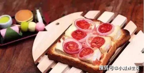 3.将切好的奶酪放在面包上