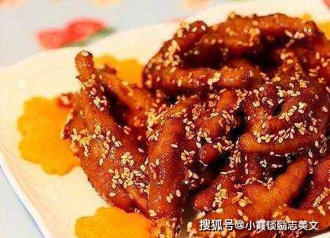 2.热油爆蒜末,鸡爪炸至表皮微焦3、加入韩式辣椒酱、番茄酱、辣椒面、生抽、糖拌匀,再加入一碗水烧开,小火煮15分钟,大火收汁,撒上煮熟的芝麻混合均匀