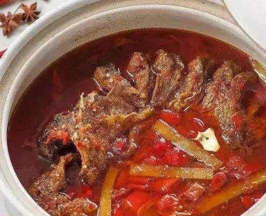 原料:牛肉300克,芹菜200克,大葱适量,干香2片,小姜2克,大蒜2克,泡椒20克,花生酱5克,酱油3克,香醋少许,味精少许,白糖少许。