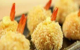 材料:鲜虾、奶酪、鸡蛋、面粉、面包、白胡椒粉、盐