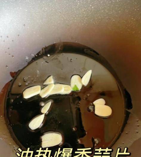 第六步:淋入少许酱料汁,大火收汁,倒入一些大蒜叶子,激发出其香味来,翻炒均匀,大火收汁。
