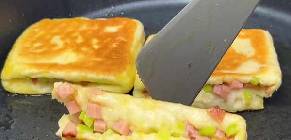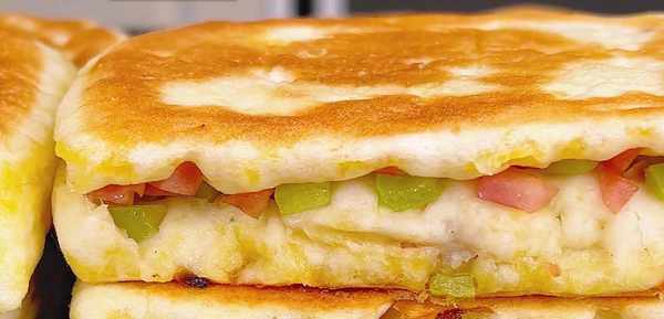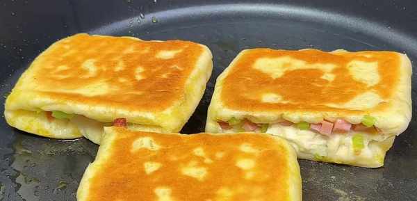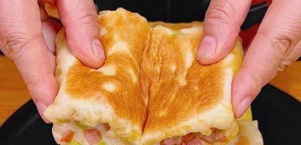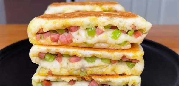 这道发面饼非常美味。表面看着颜色金黄,非常有食欲,刚出炉的时候吃着有一点脆,里面是蓬松暄软的。层次中夹着一些配料,红绿搭配,红的是孩子喜欢的火腿肠丁,绿的是绿色蔬菜青椒。这两种食材都非常常见,且营养价值很高。用它们来搭配做这道美食不用做菜,直接吃就可以了,营养很均衡。吃的时候味道鲜美,一点也不腻,因为是咸口的,做出来天天吃都不会腻。我喜欢用它做早餐,配上一碗粥,真是暖心又暖胃。