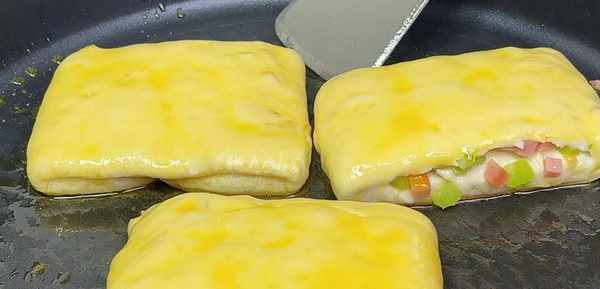 11.烙到底部定型变色之后给它翻个面,继续烙。