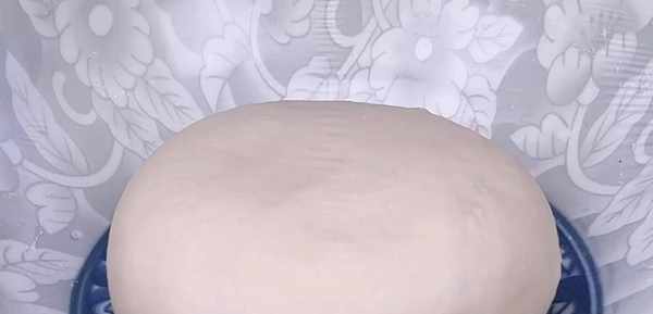 3.下手揉成表面光滑的面团。盖上保鲜膜,让它发酵到两倍大。