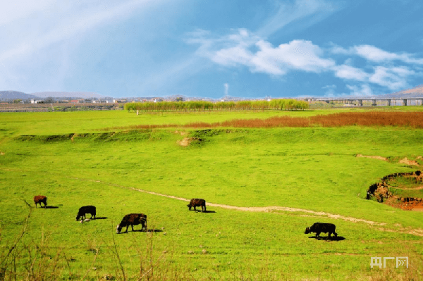 央广网衡阳3月16日消息(记者唐丽丽 通讯员颜伶俐 李花)万壑至此平,天地一色青。行至湖南省衡阳市衡东县湿地公园石杨洲滩,极目远望,映入眼帘的是一大片“青青草原”。“草原”上三三两两的牛儿悠闲地吃着草,瞬间心开始飘飘然,飘到云端,与春日双向奔赴,享受着片刻的浪漫。