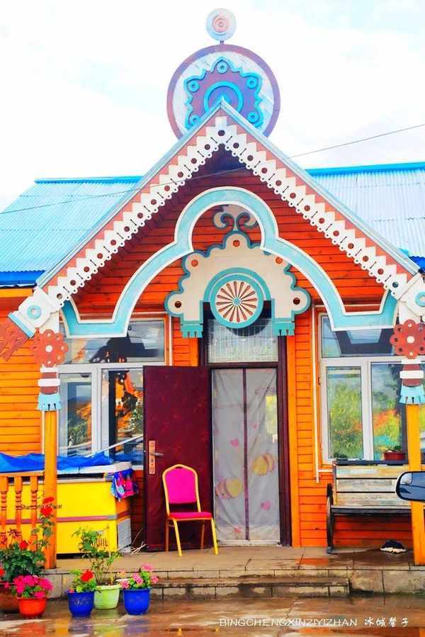 走进边疆村,我被它整洁的街道、俄罗斯的特色民房吸引住了。那形各状的俄式尖顶门楼,刷着五颜六色的墙面,雕刻的窗门,门前院后种的花儿,让我想到了去贝加尔湖时见到的俄罗斯村庄。