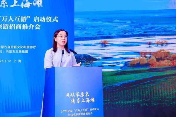 继粤蒙“百万人互游”活动之后,内蒙古自治区文化和旅游厅组织全区盟市文旅部门和旅游企业走进长三角地区,于3月12日,在上海举行2023沪蒙“百万人互游”文化旅游招商推介活动。