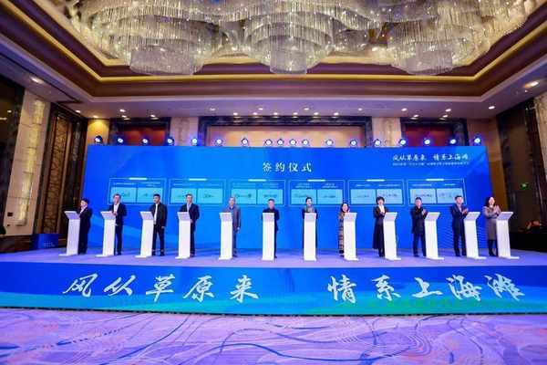 伴着内蒙古的歌舞,内蒙古博物院、呼和浩特机场进行专题推介,呼和浩特市、包头 市、呼伦贝尔 市、锡林郭勒 盟、乌兰察布 市、鄂尔多斯 市、巴彦淖尔 市、乌海 市等8个盟市联袂专场推介。会上,兴安盟、通辽市、鄂尔多斯市、巴彦淖尔市、满洲里市就河谷宿集运营管理、马术训练、旅居养生、新型文商旅化综合体、文旅商品开发签订合作协议,意向资金12.8亿元。除项目签约外,16家内蒙古旅行社与长三角旅游企业签订互送客源协议。