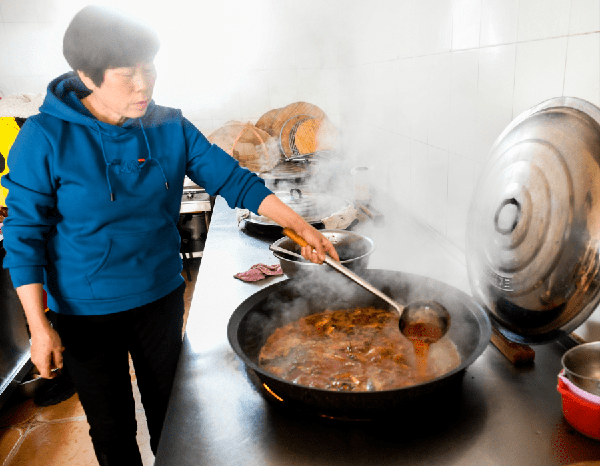 原来,任秀清还是呼和浩特市非物质文化遗产代表性项目托克托传统炖鱼技艺的传承人,一手炖鱼的好手艺远近闻名。她的农家乐最多能容纳180人同时就餐,为村民提供了就业岗位,游客品味着托县炖鱼,在唇齿留香间非物质文化遗产得以继续传承发展。