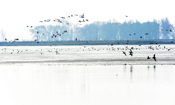 如今,越来越多的候鸟来到这里驻足栖息,每年过境的候鸟数量庞大、种类繁多,包括天鹅、灰鹤、野鸭、红嘴鸥等,这里已经成为候鸟迁徙途中重要的“中转地”和“补给站”。