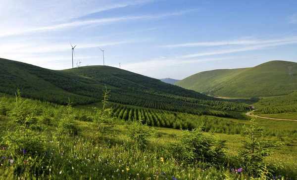每年的七、八月间,正是草原最美丽的时节,驱车沿“京北第一天路”行驶,落叶松、白桦树、山杨、河柳、风车和山坡草甸相互交错,层次分明,如一幅幅美丽的山水画卷,尽显大自然的妖娆。