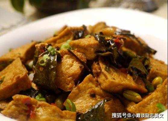 3.加入豆腐块,炸至金黄色。将炸豆腐放入茶叶中搅拌均匀。