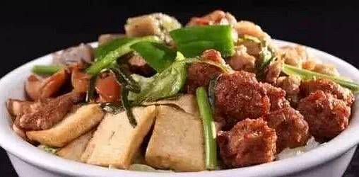 9、开锅后,放入酥皮肉、丸子和粉丝。大火烧开,转小火,文火煮至粉丝变软;