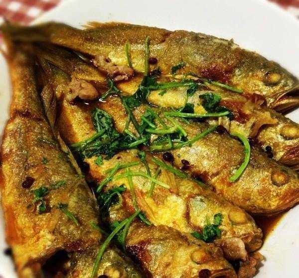 原料:黄花鱼500克,鸡蛋1个,油、盐、酱、糖、姜、葱、蒜;