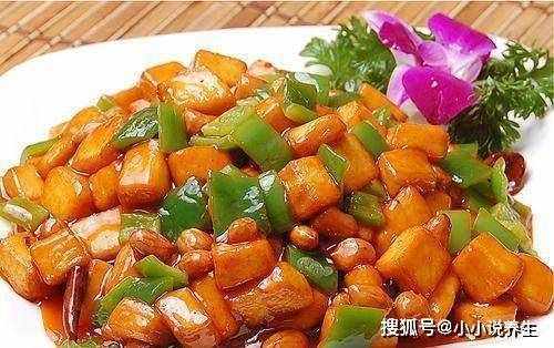 配料:豆腐250克、花生米100克、蒜苔50克、紫椒8个、芝麻20克、白糖1勺、香醋1勺、原油2勺、黑醋1/2勺酱油料酒、盐1勺、淀粉1勺、