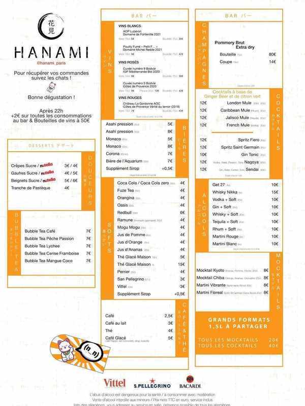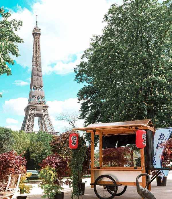 Hanami(Hana是花的意思,mi是看见,所以可以翻译为花见),这种形式的小吃店,其灵感来自日本在春季开始时,在樱花树下的野餐,现在这个概念完美地被法国人继承了。Hanami露天位置面向塞纳河和埃菲尔铁塔,先不说食物,光是地点就令人心旷神怡。